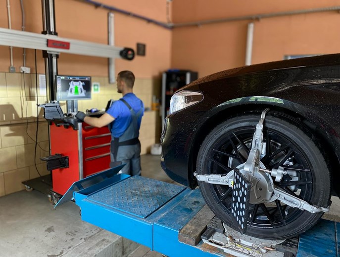 - Pełny pomiar i regulację geometrii kół 3D,